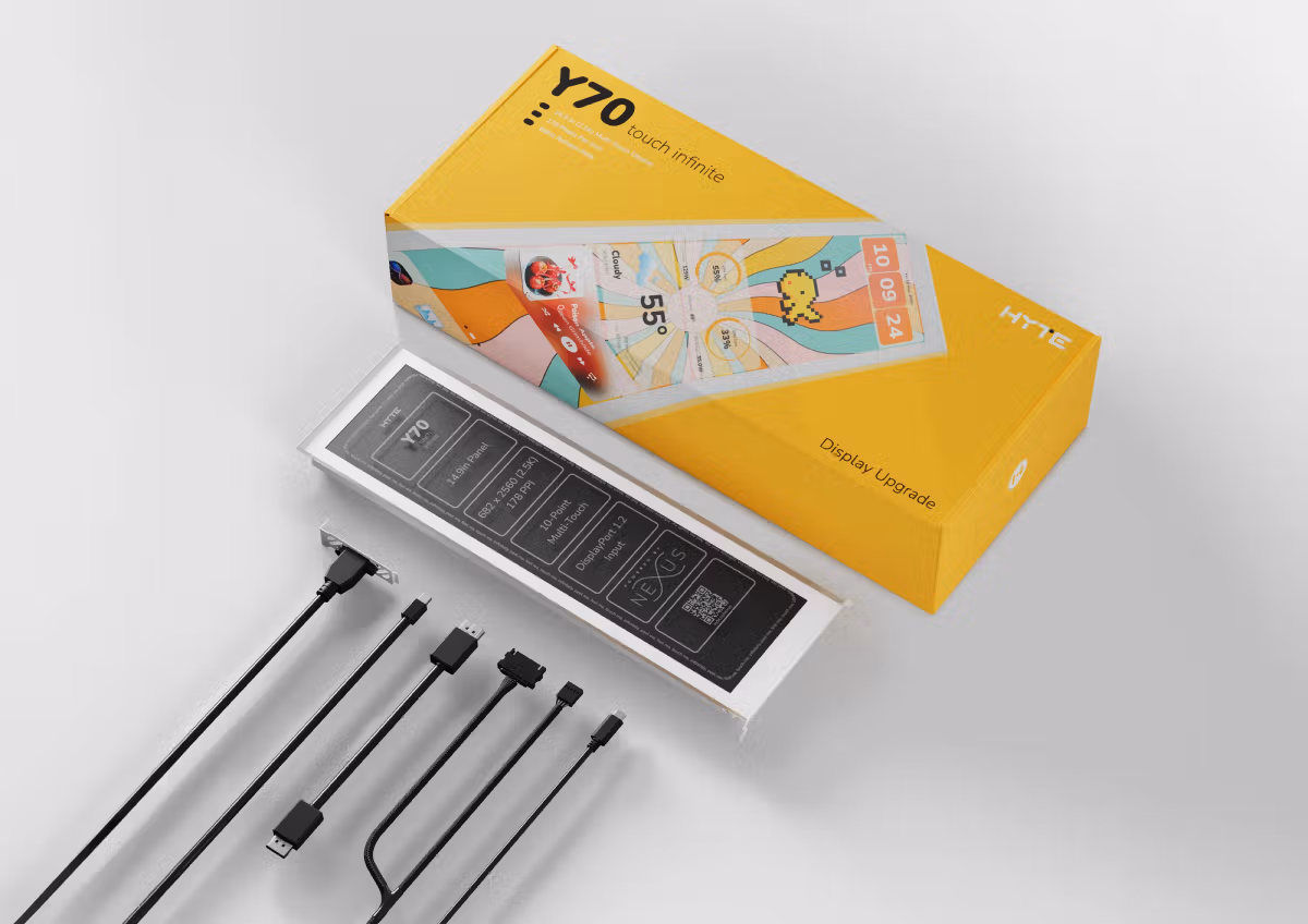 Revolutionize your HYTE Y70 PC case with the Y70 Touch Infinite Display Upgrade in white, featuring a groundbreaking 14.9-inch IPS touchscreen for unparalleled interaction. This third-generation display, 43% brighter than its predecessors, delivers vibrant 2.5K resolution at 682 x 2560 pixels with a 60Hz refresh rate, ideal for system monitoring, custom widgets, or immersive gaming overlays. The 10-point multi-touch capability enables intuitive control, enhanced by HYTE Nexus software for extensive customization of themes and animations. Seamlessly integrated into the chassis with a user-friendly installation kit, this upgrade maintains optimal airflow while elevating aesthetics and functionality, making it a must-have for enthusiasts seeking a dynamic, touch-enabled PC experience.