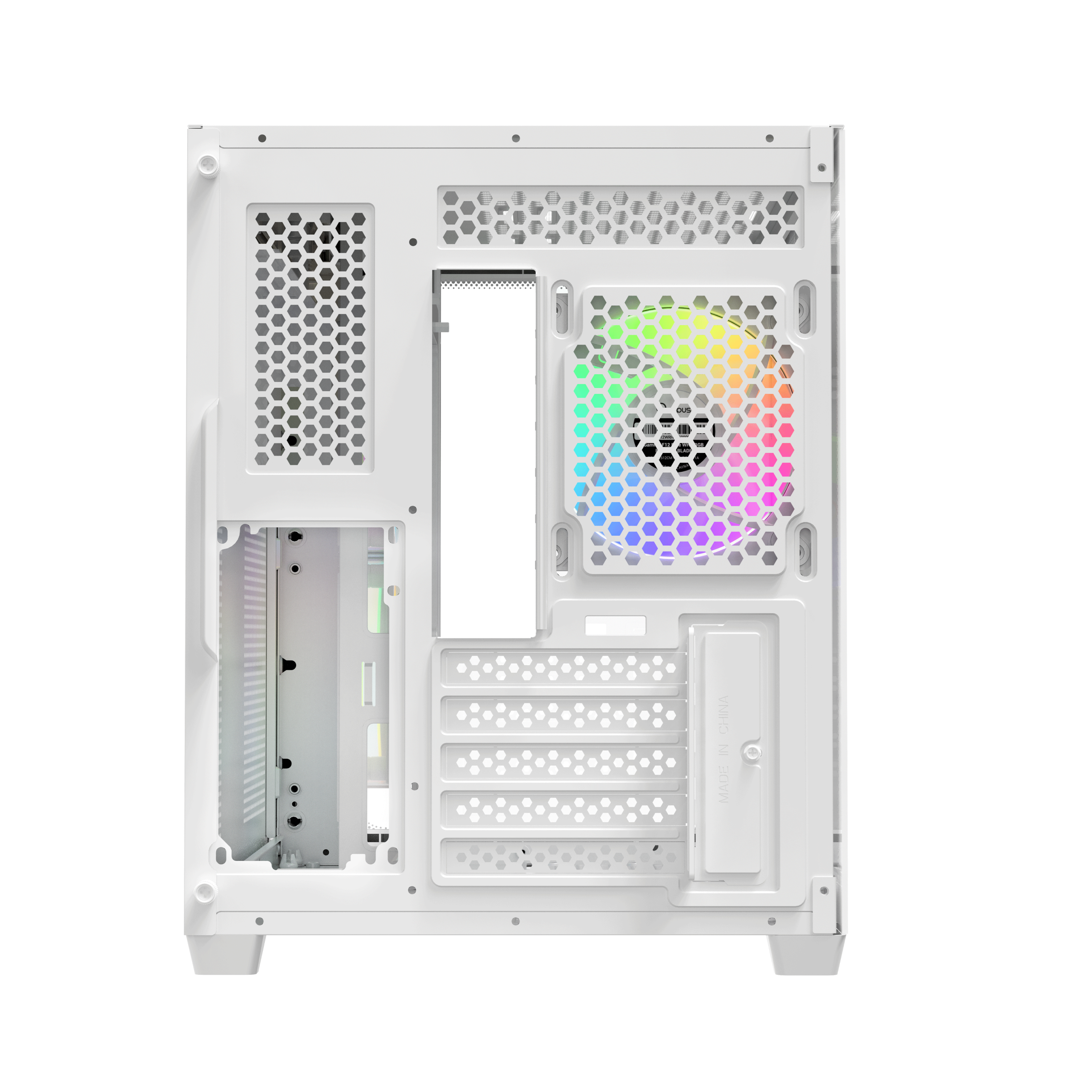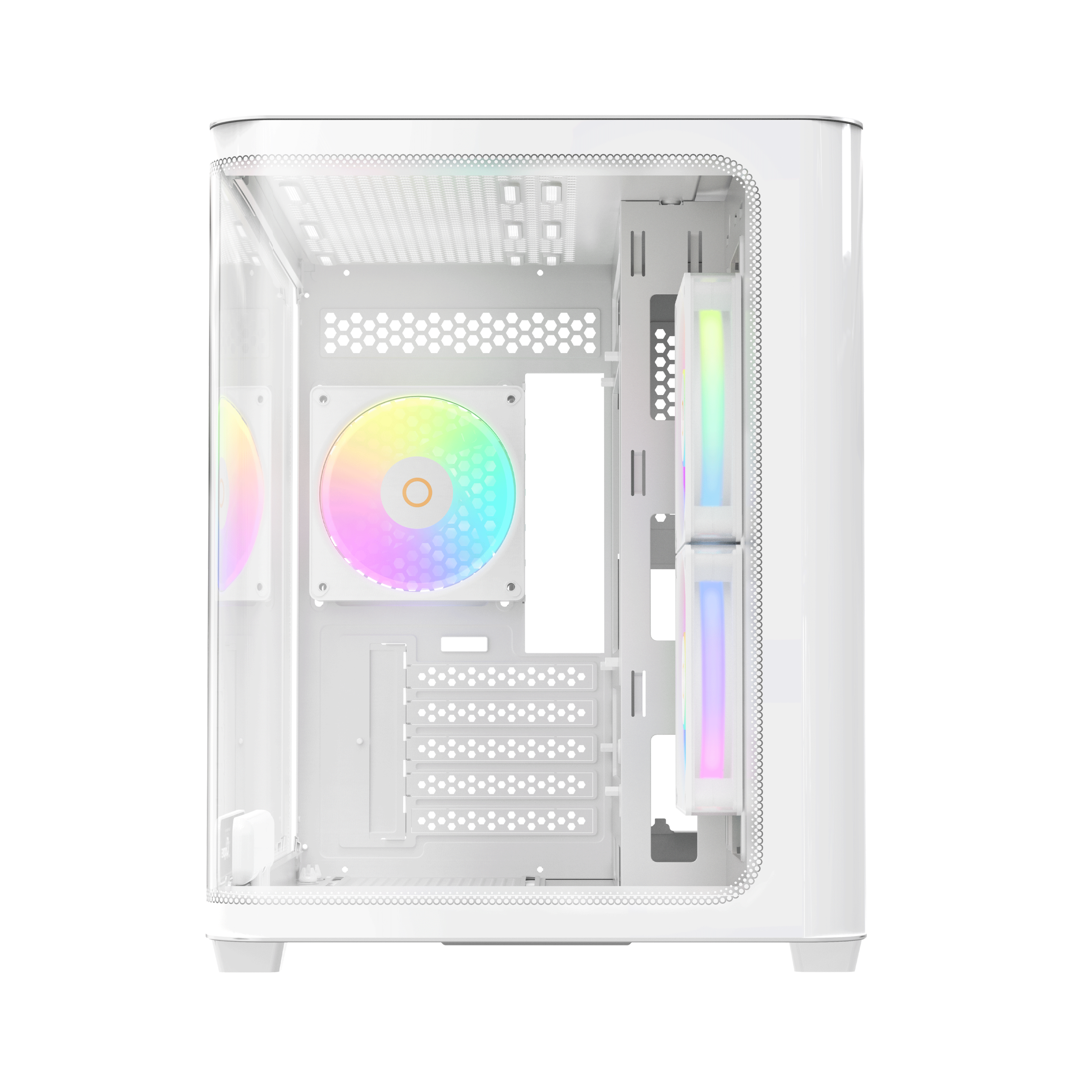 - Panoramic View: 270° seamless curved tempered glass for an immersive hardware showcase.