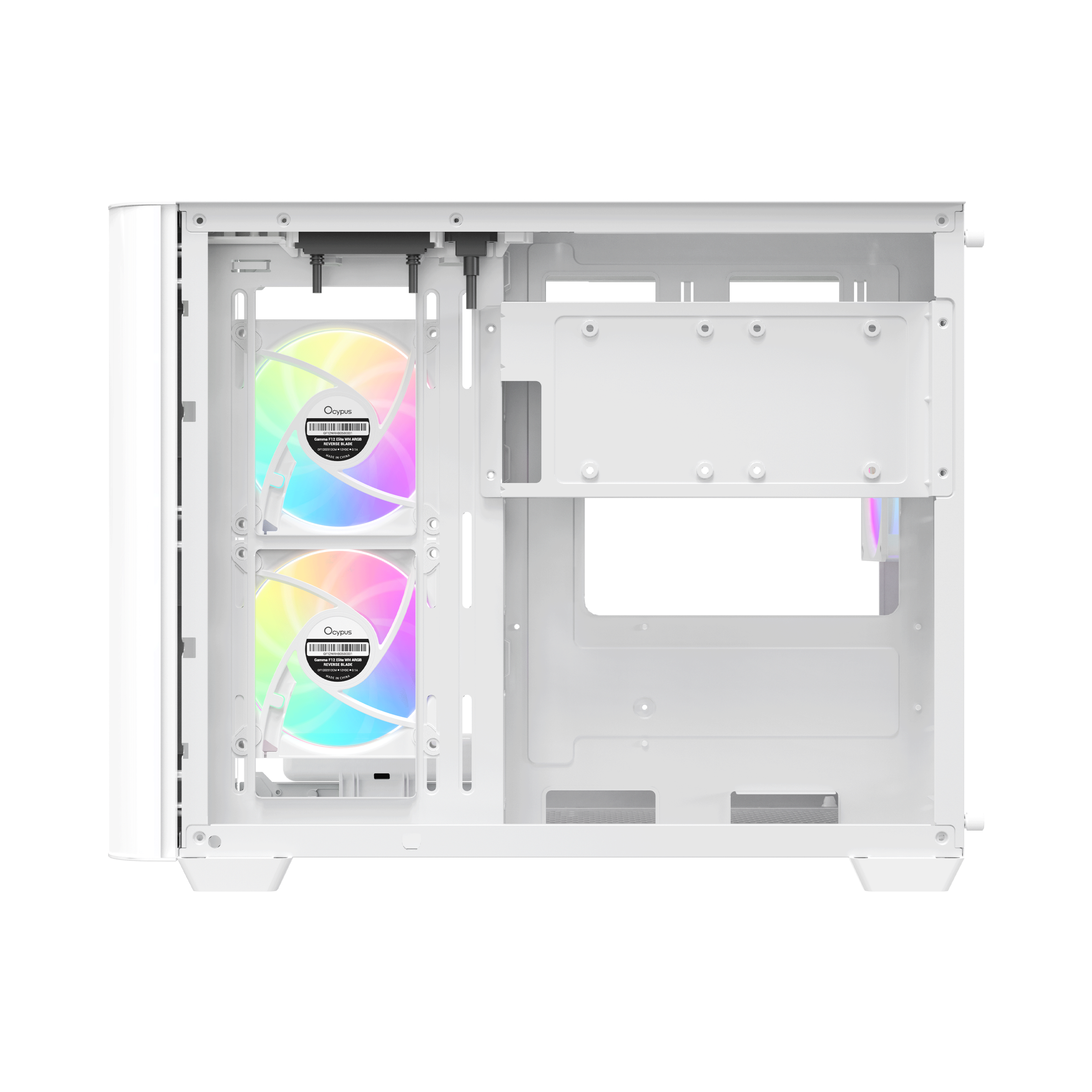 The Iota C50 White defies the limitations of traditional Mini-Towers with its extraordinary cooling capabilities. Capable of supporting up to nine 120mm fans, it ensures a constant stream of fresh air to critical components. More impressively, it supports dual 360mm radiators simultaneously—one on the top and one on the bottom—along with additional side radiator support. This level of flexibility makes it an ideal choice for enthusiasts looking to build custom water loops or utilize high-performance AIO coolers. To get you started, the case comes pre-installed with three Gamma F12 Elite ARGB fans, delivering efficient cooling and vibrant lighting straight out of the box.